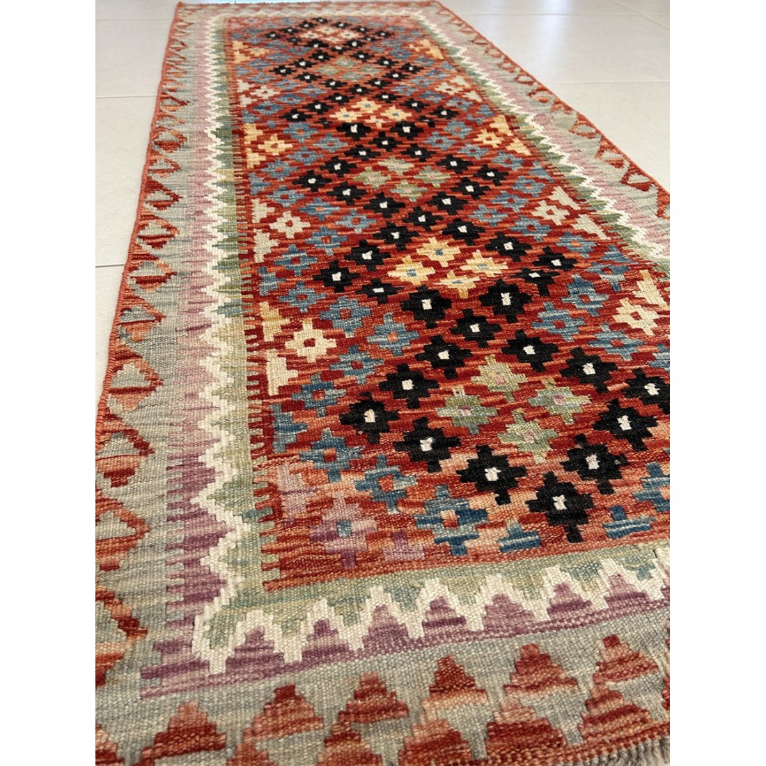 tappeto in lana kilim afgano 198x82 cm