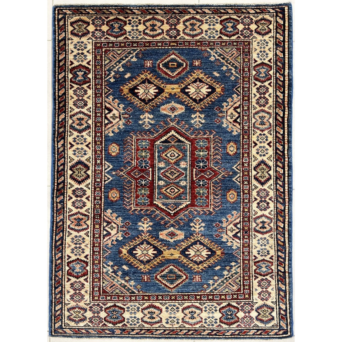 Tappeto in lana kazak extra blu e beige 102x139 cm