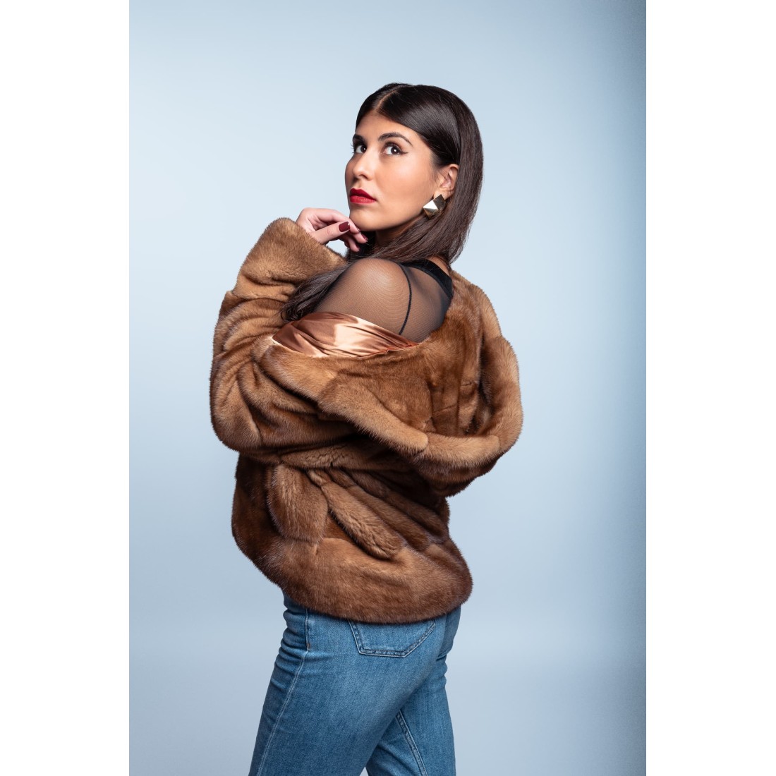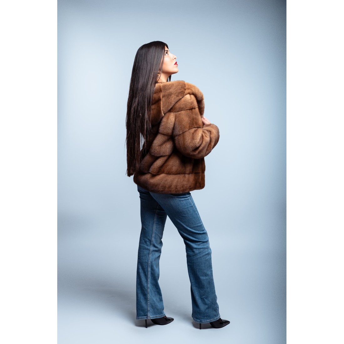 giacca in pelliccia di visone con cappuccio, offre una texture morbida e una lucentezza naturale che valorizza ogni outfit.