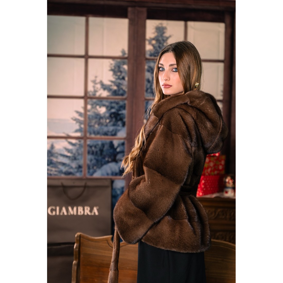 giacca in pelliccia di visone con cappuccio e cintura, offre una texture morbida e una lucentezza naturale che valorizza ogni outfit.