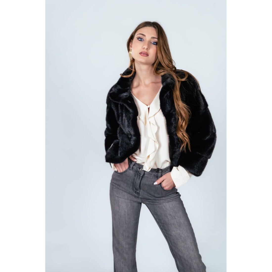 Elegante pelliccia in visone naturale, un capo raffinato e di carattere, pensato per una donna che ama uno stile deciso ma sofisticato. Il pregiato colore Damy Baff, intenso e profondo, esalta la lucentezza naturale del visone, donando un’eleganza senza tempo.