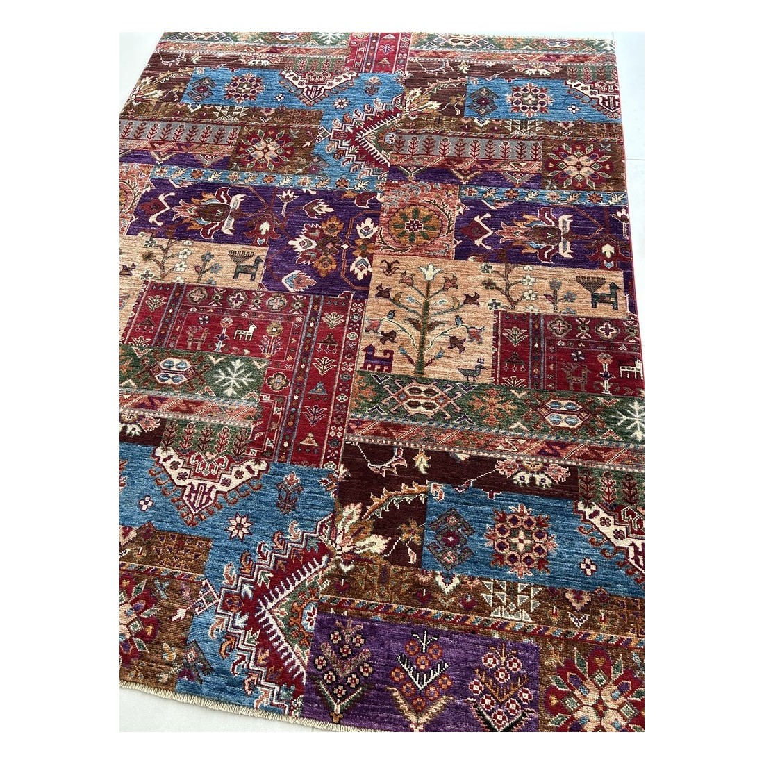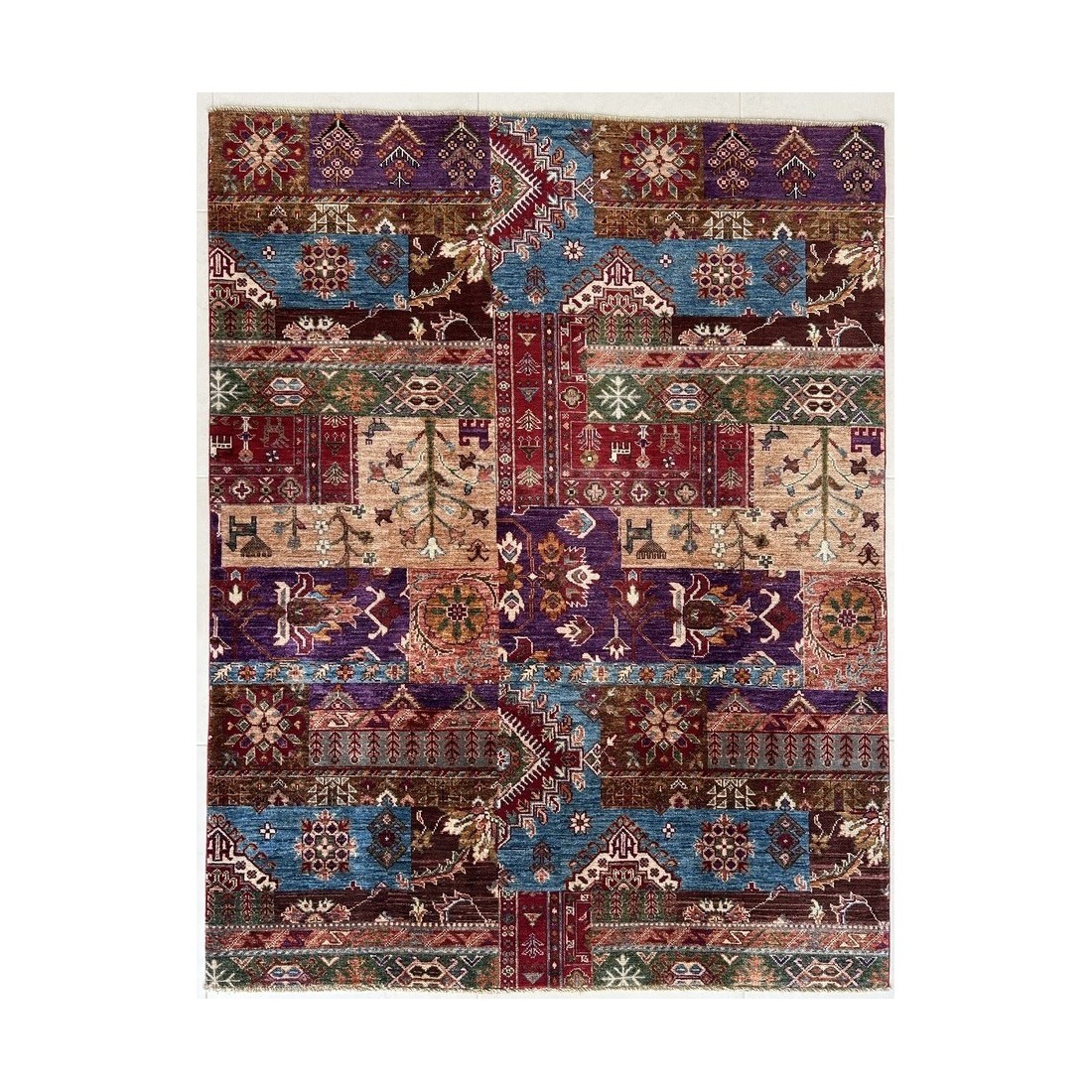Tappeto Ziegler patchwork annodato a mano, elegante fusione tra tradizione orientale e design contemporaneo.
