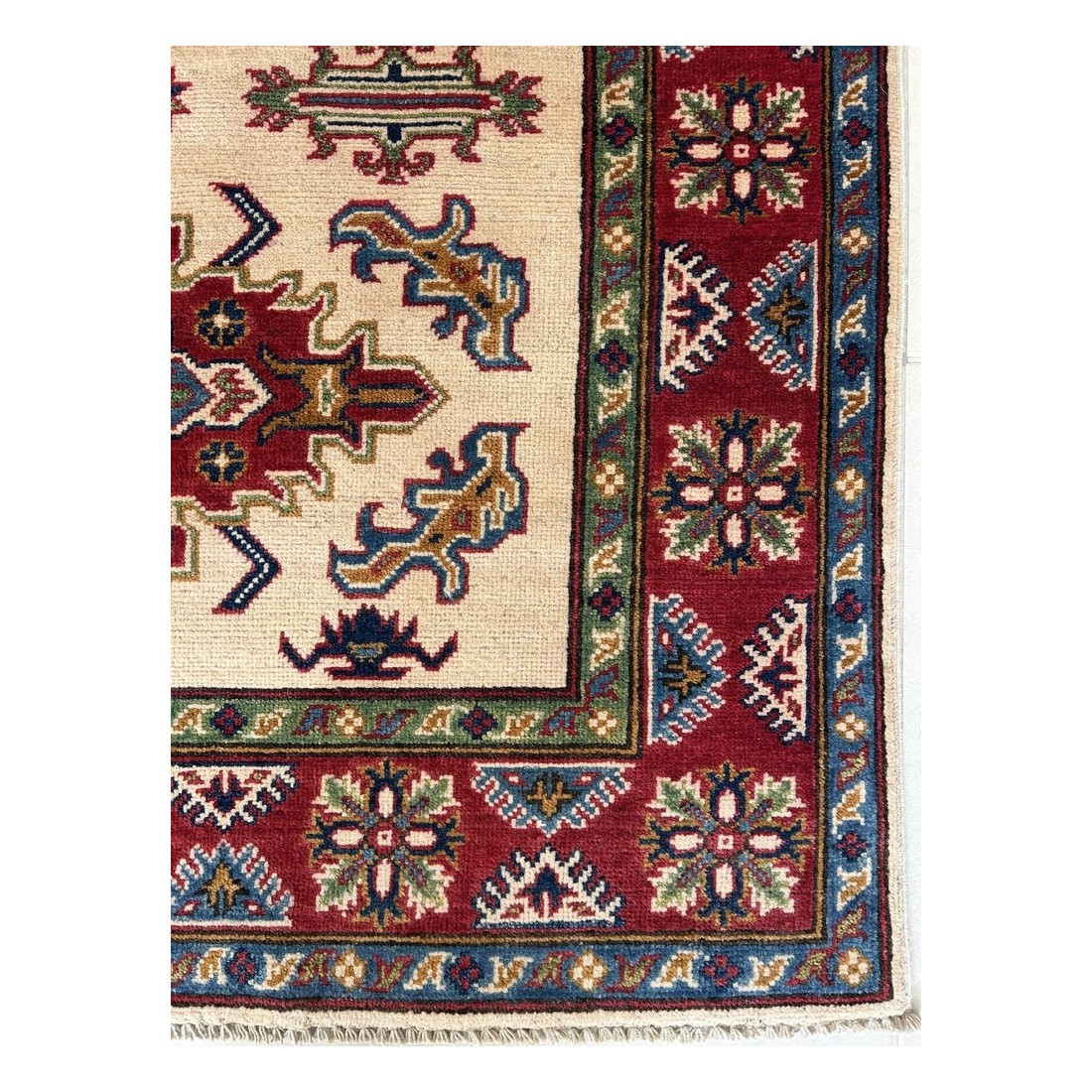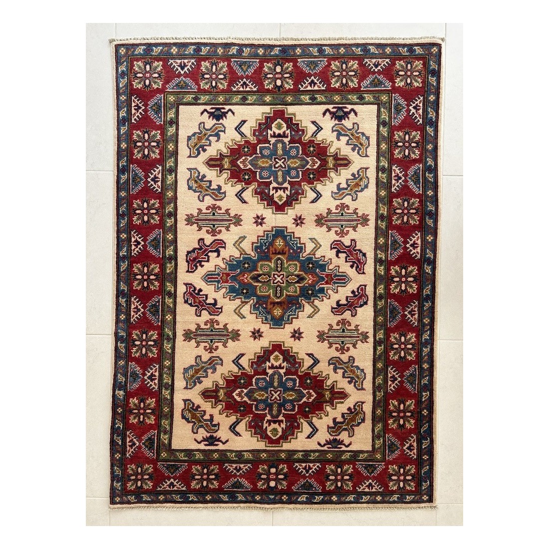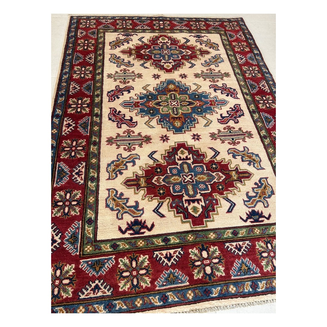 Tappeto Kazak annodato a mano 175x123 cm, autentico e artigianale, perfetto per salotti e ambienti di prestigio.