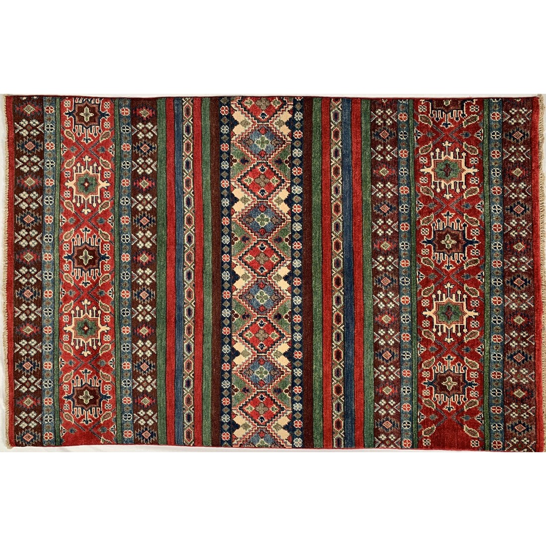 Tappeto Kazak misura 122x186 cm annodato a mano con ordito e trama in cotone realizzato nelle zone del caucaso.