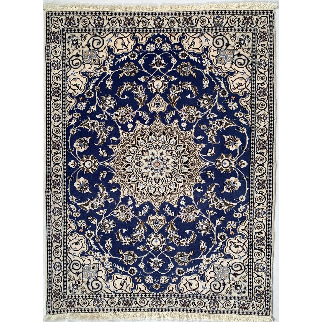 Tappeto persiano Nain annodato a mano misura 93x124 colore fondo blu chiaro con cornice bianca