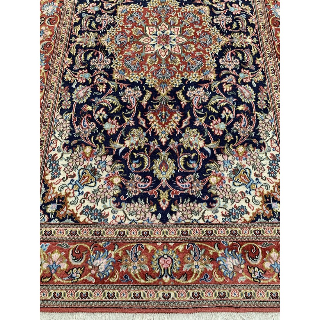 Tappeto persiano Qum misura 124x195 cm annodato a mano colore fondo blu