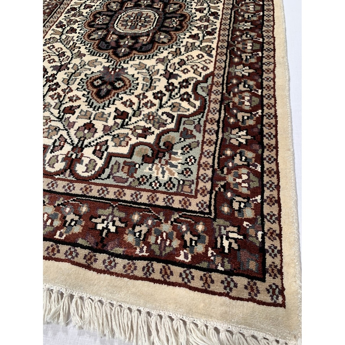 Tappeto scendiletto annodato a mano misura 60x103 colore fondo beige con cornice rossa