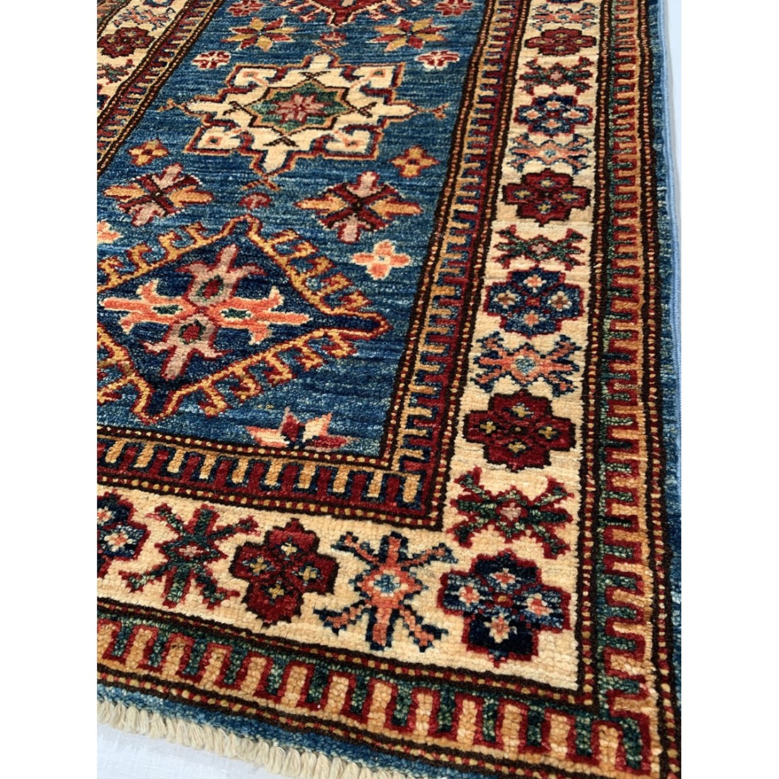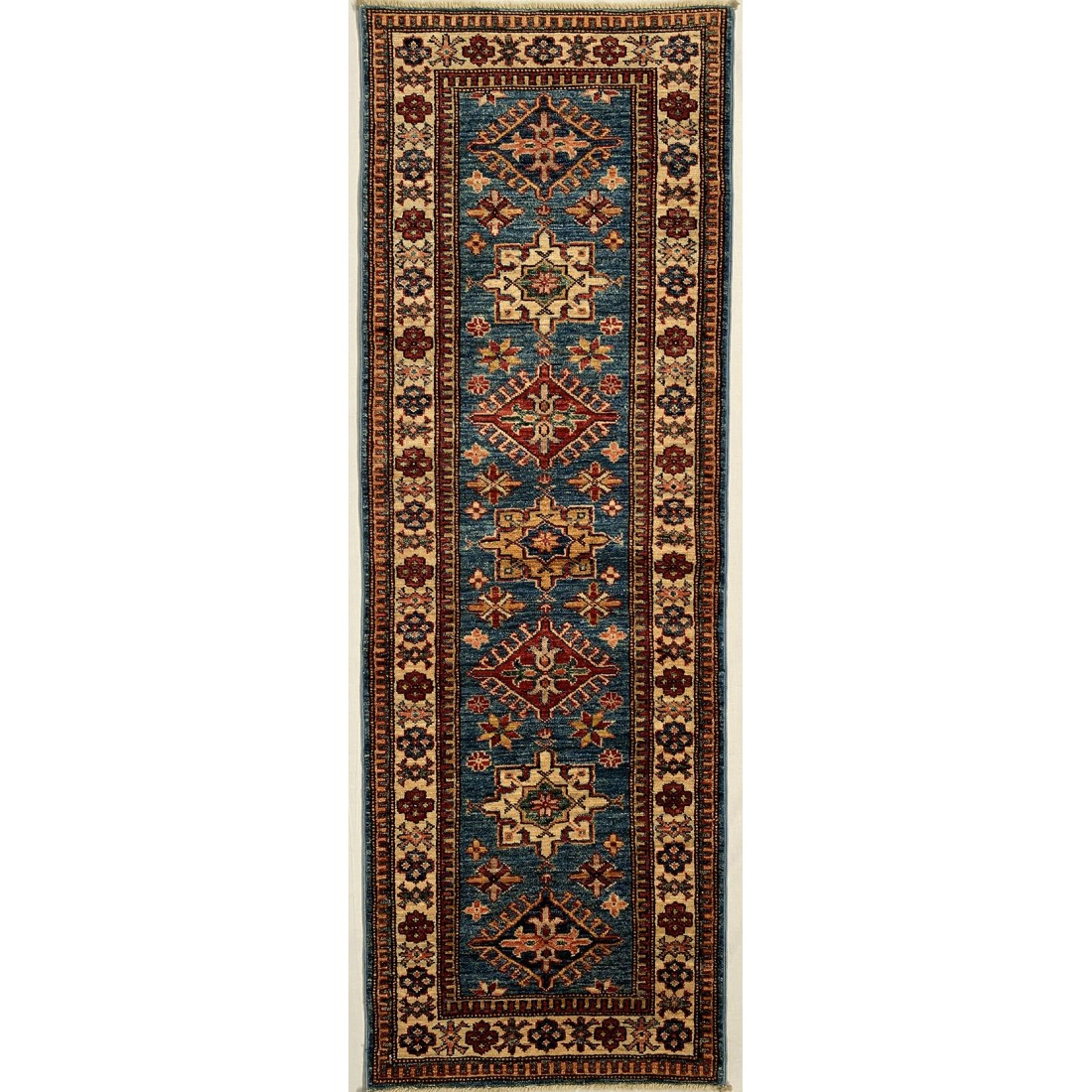 Tappeto passatoia Kazak qualità extra, annodato a mano nella regione del Caucaso, misura 180x60 fondo azzurro con cornice beige