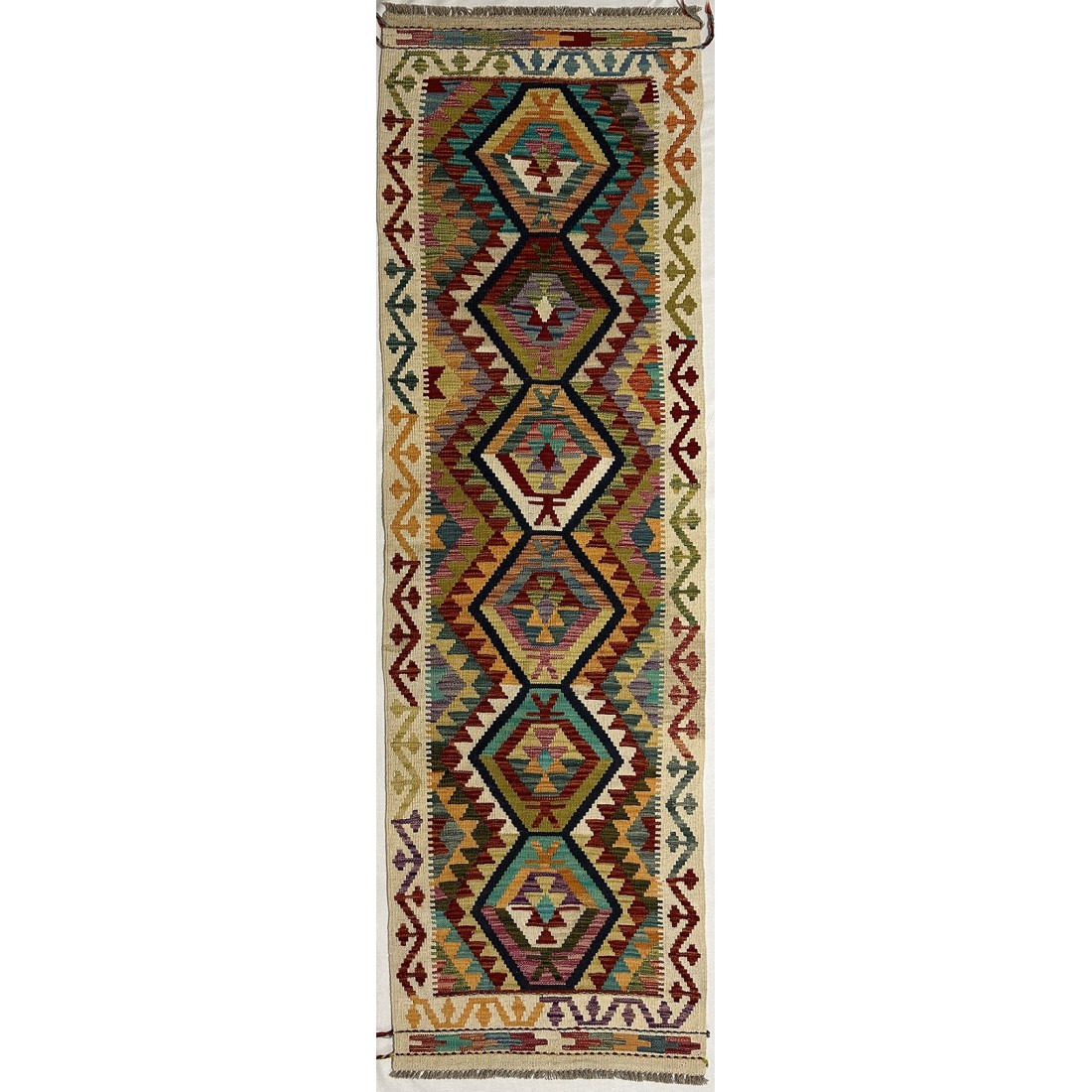 Tappeto passatoia in lana Kilim Afgano misura 248x75 cm annodato a mano dai turkmeni nell' Afganistan settentrionale