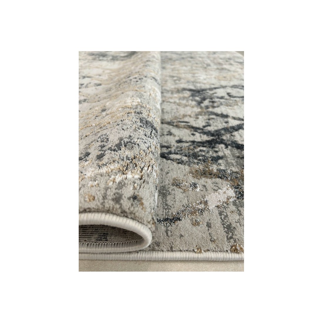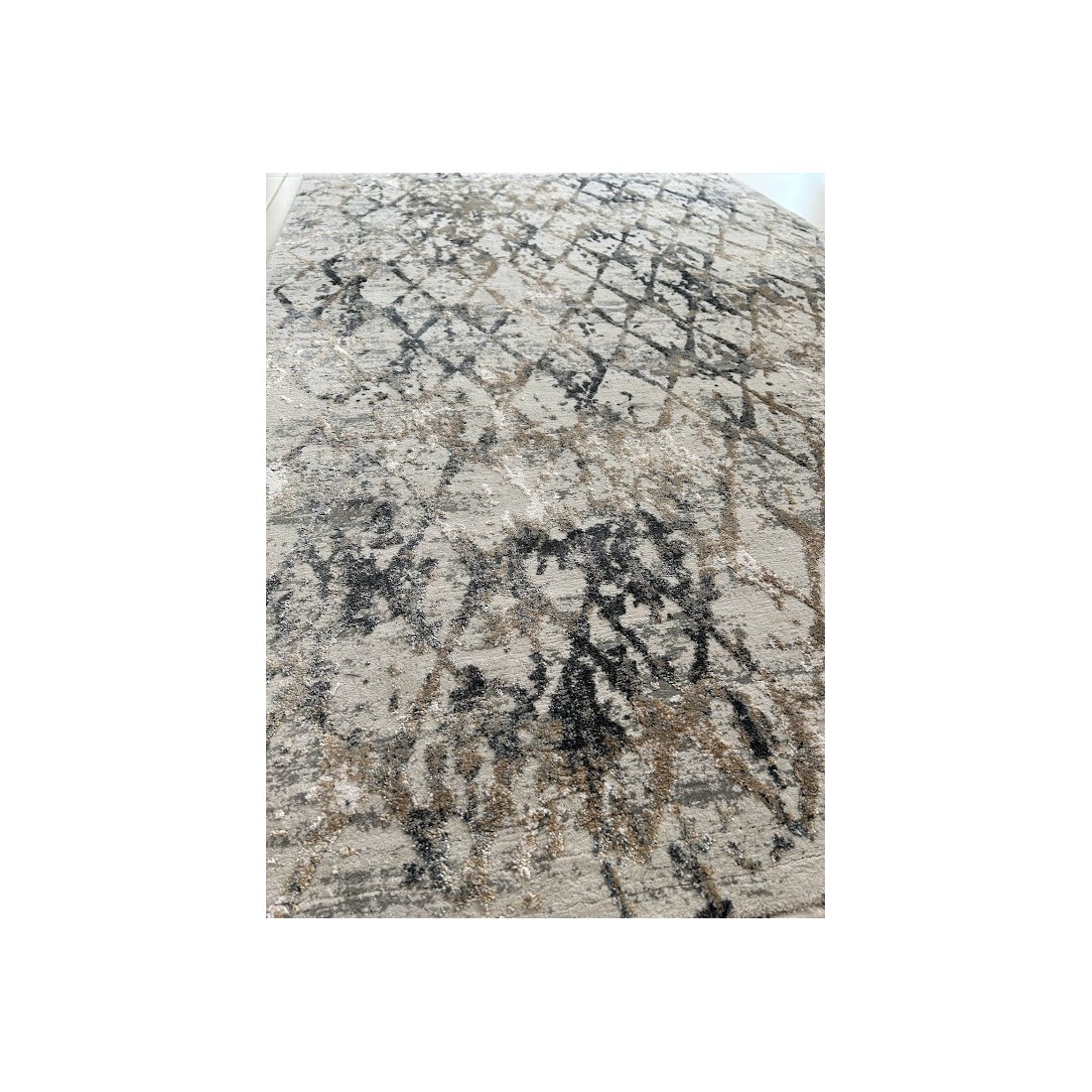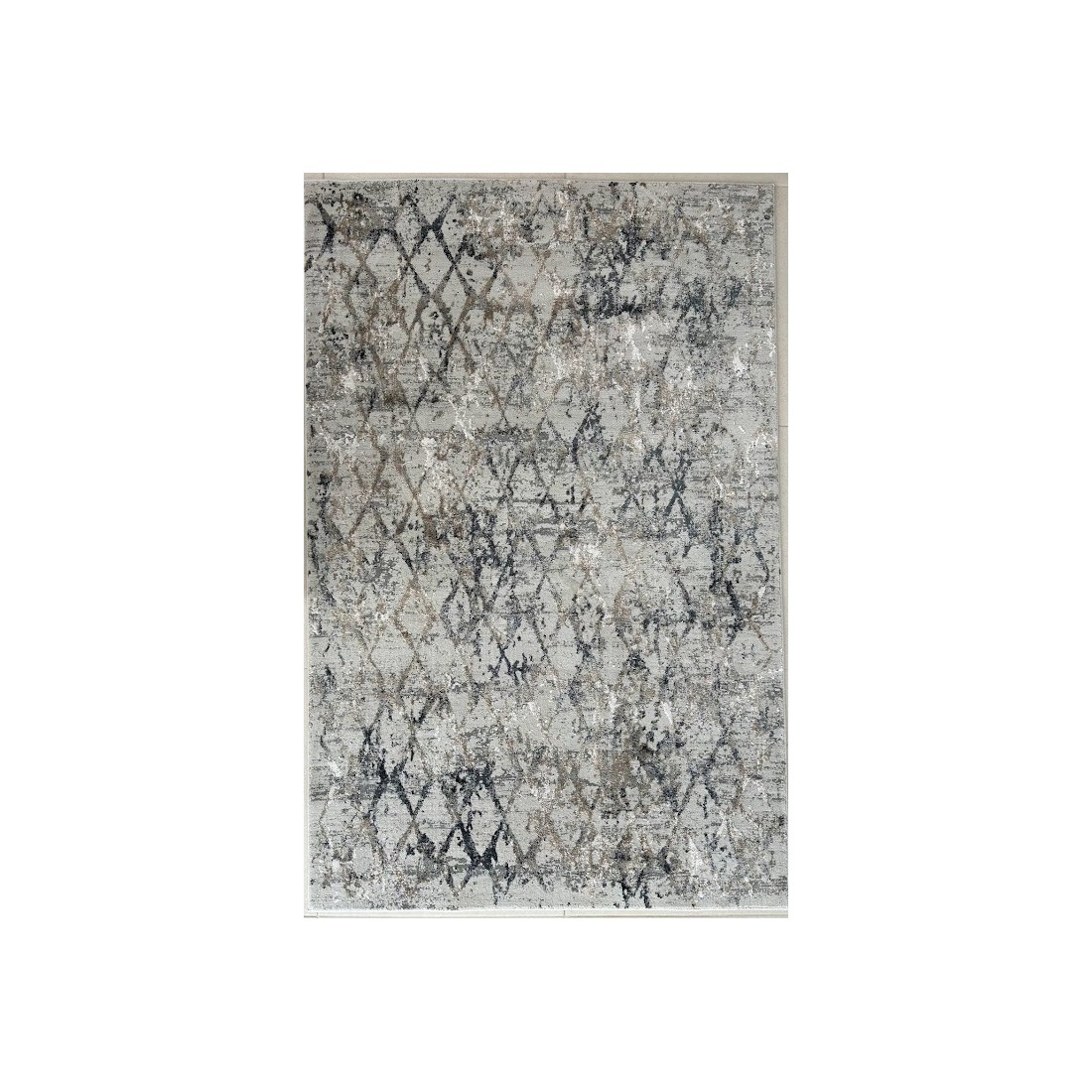 Tappeto moderno Montreal annodato a macchina con lane sintetiche, il disegno è geometrico con i colori del grigio e del tortora.