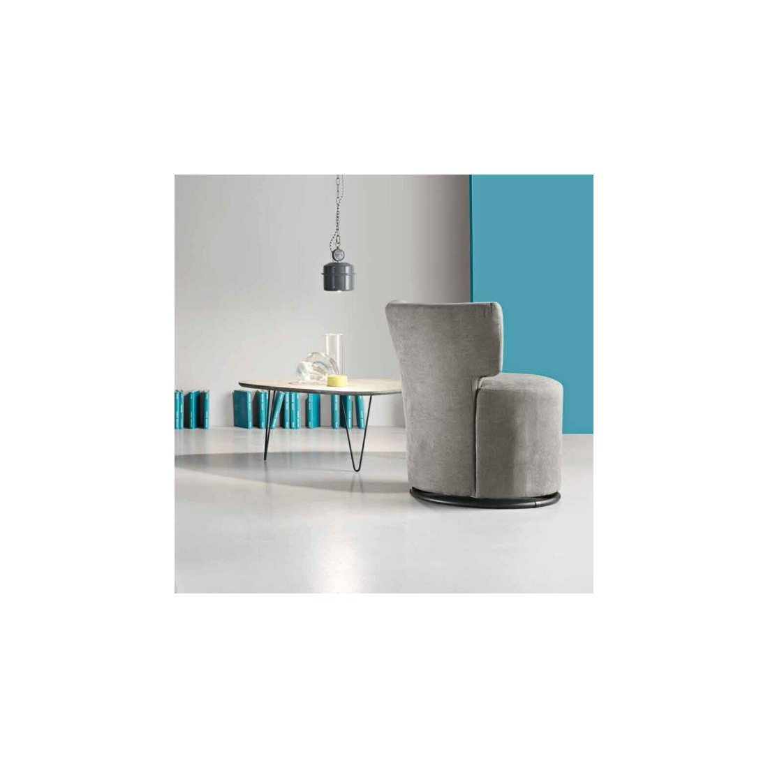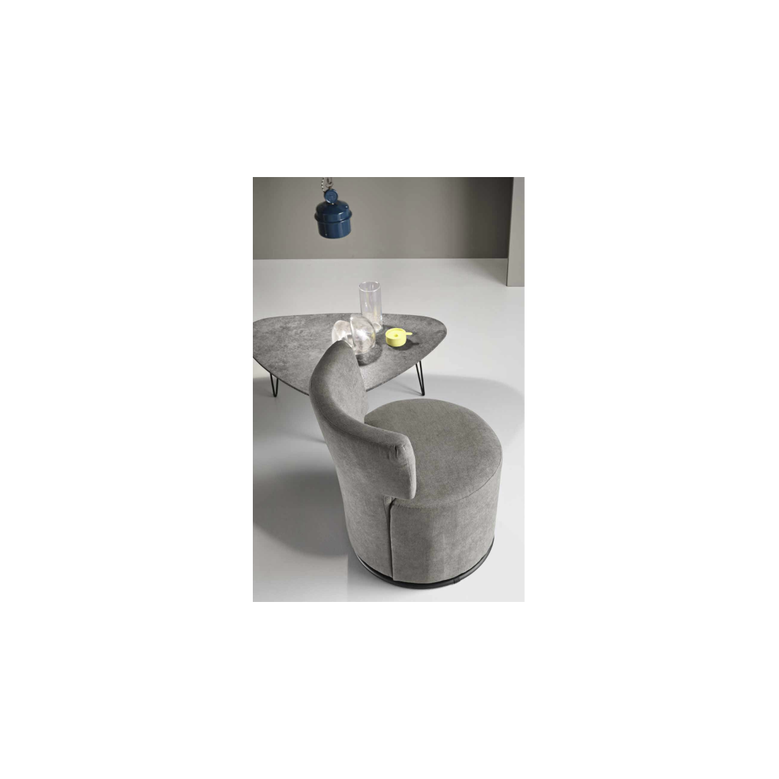 Comoda poltrona in tessuto con struttura in metallo, colore grigio chiaro misura h. 78 l. 67